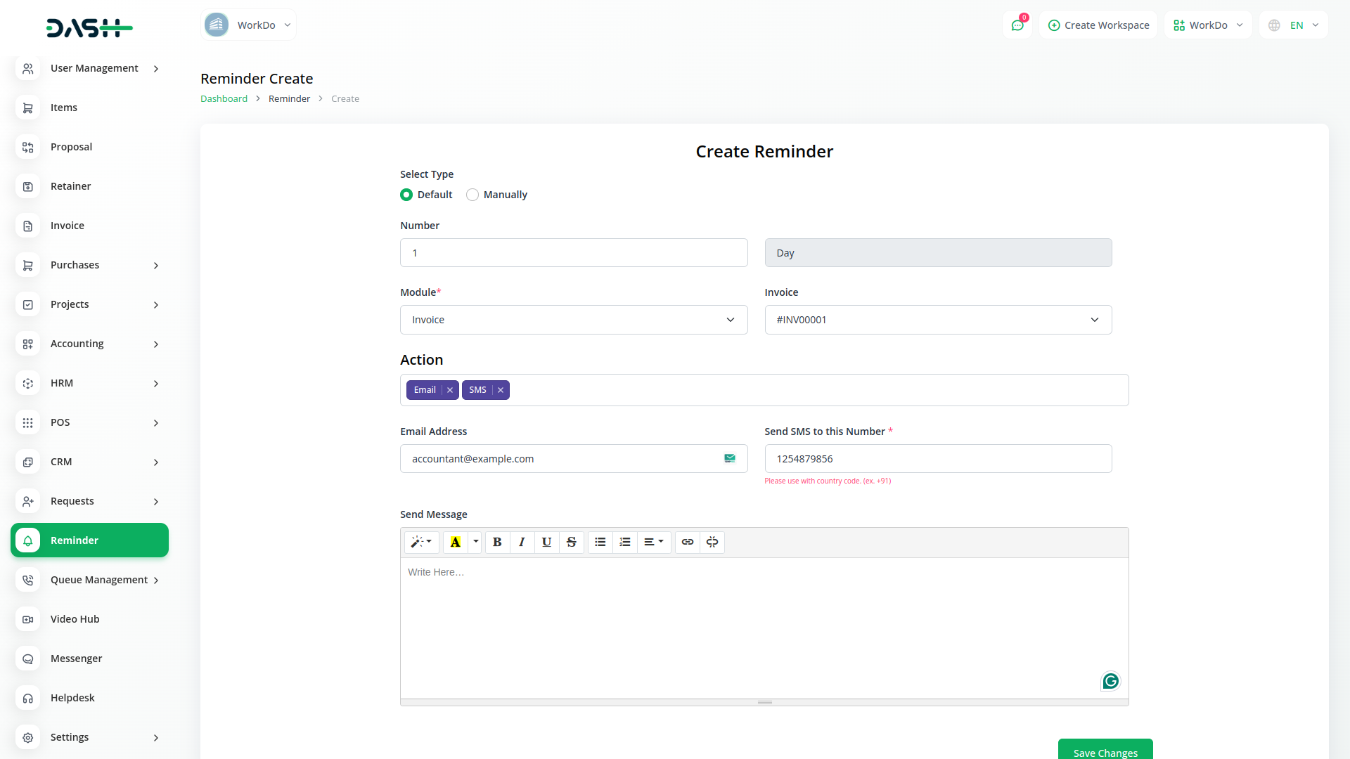 Creating new reminders is quick and easy. Simply input the details of your reminder, including the action, date, and any messages. Whether it's a lead, invoice, bill, deal, or user, our module allows you to set reminders for any event or activity effortlessly.