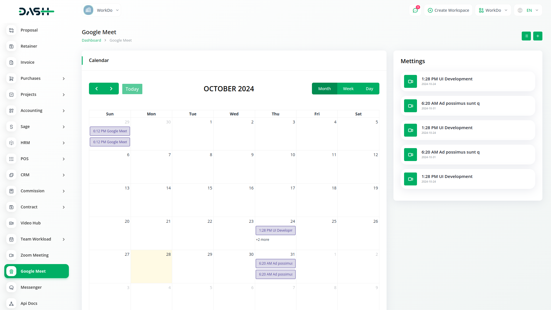 Discover the seamless collaboration of Workdo-Dash, where productivity meets innovation. Integrated with Google Meet, our platform transforms teamwork, allowing real-time collaboration and efficient meetings. Elevate your productivity and streamline your work processes with Workdo-Dash – where work meets innovation effortlessly.
