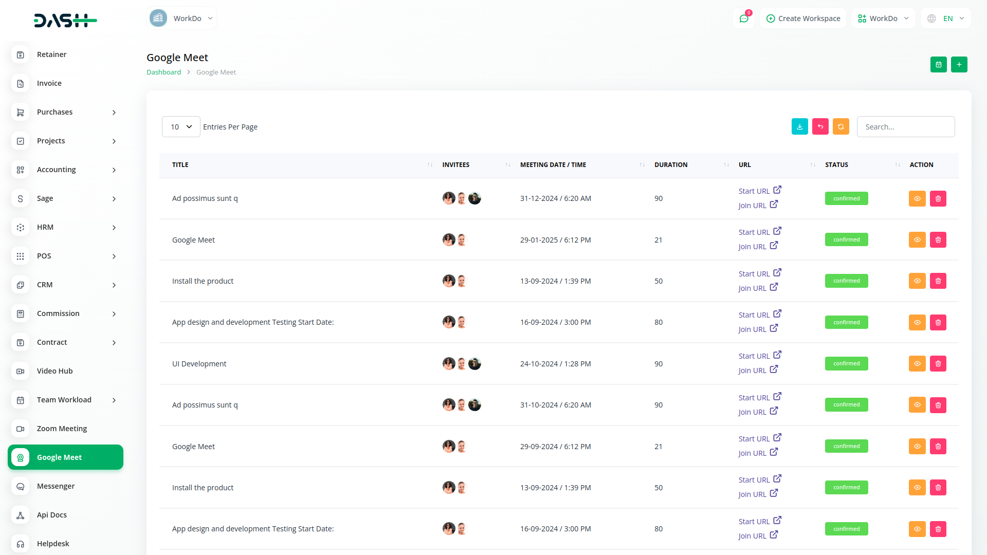 Gain a holistic view of all your meetings right within Workdo-Dash. Effortlessly access and manage your meeting schedule, ensuring optimal organization and enabling you to prioritize your time effectively. Stay on top of your commitments and boost productivity with our intuitive meeting listing feature.