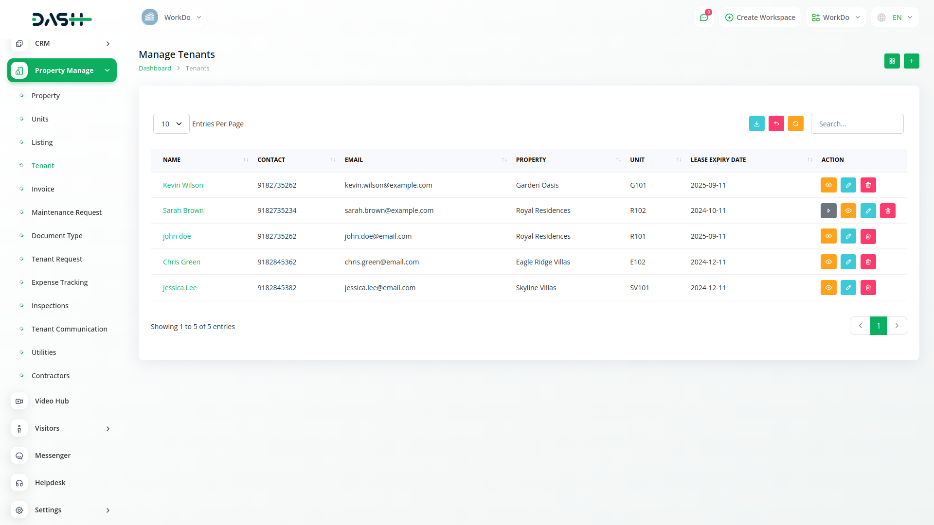 Modify and update your generated property management property units with ease. Add new property, unit and his details without stress. Property Management allows you to create and maintain the data of each tenant. You get access to all essential information through a well-maintained format.